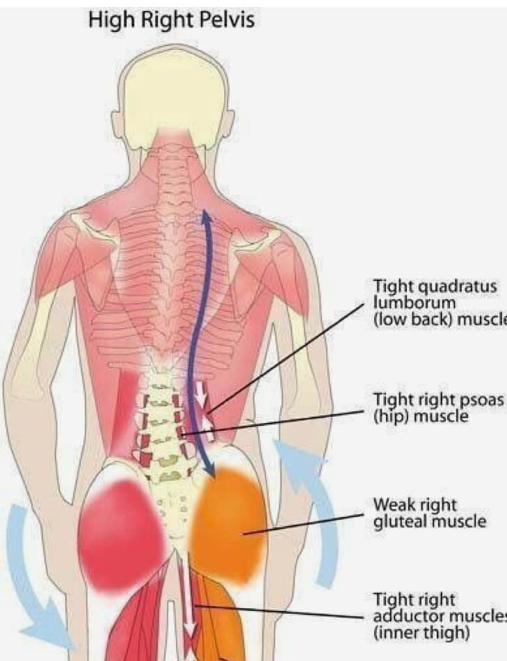 골반높이가 높아질 경우 고관절 , 무릎관절 및 발목관절의 방향이 틀어지게 되고 좌우 밸런스가 깨지게 됩니다.