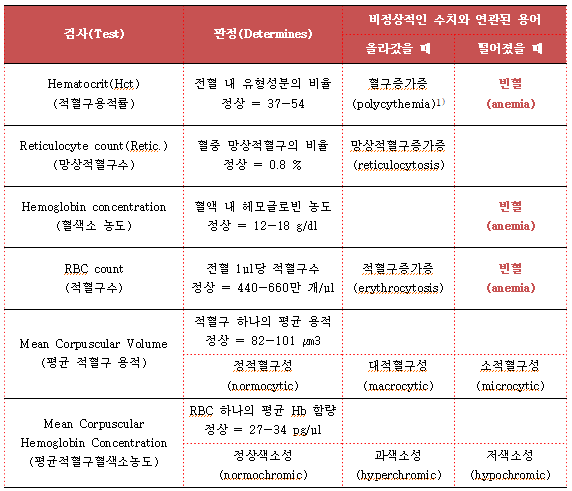 ▲ 표. 적혈구 검사와 관련 용어(RBC Tests and Related Terminology)