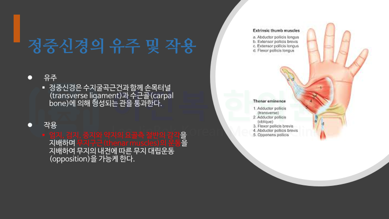 오늘은 정중신경의 압박으로 발생하는 손목터널증후군(수근관증후군)에 대해 설명해보겠습니다.