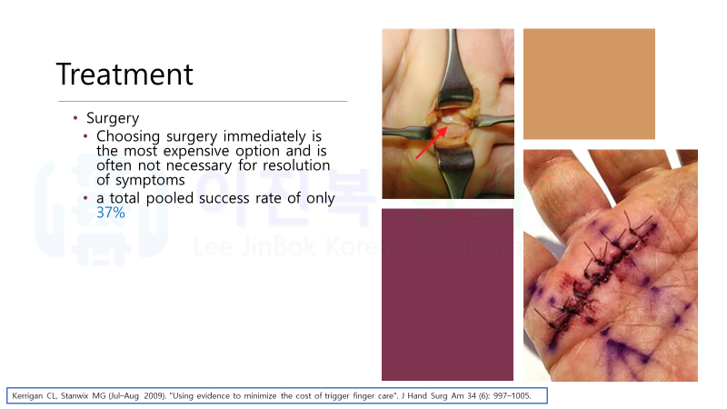 수술을 바로 하기 보단 유착된 연부 조직을 박리하는 침도 요법을 통해 치료할 수 있습니다.