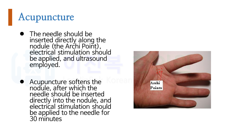 초기 전침, 약침 등의 치료를 시행하게 되고, 이 치료 시기를 놓치게 되는 경우~~