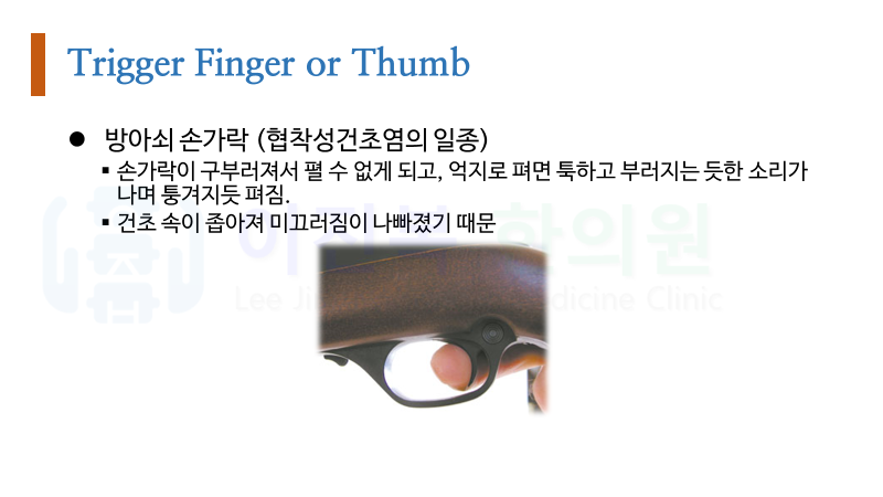 오늘은 방아쇠 수지(손가락) 트리거 핑거에 대해 알아보겠습니다.