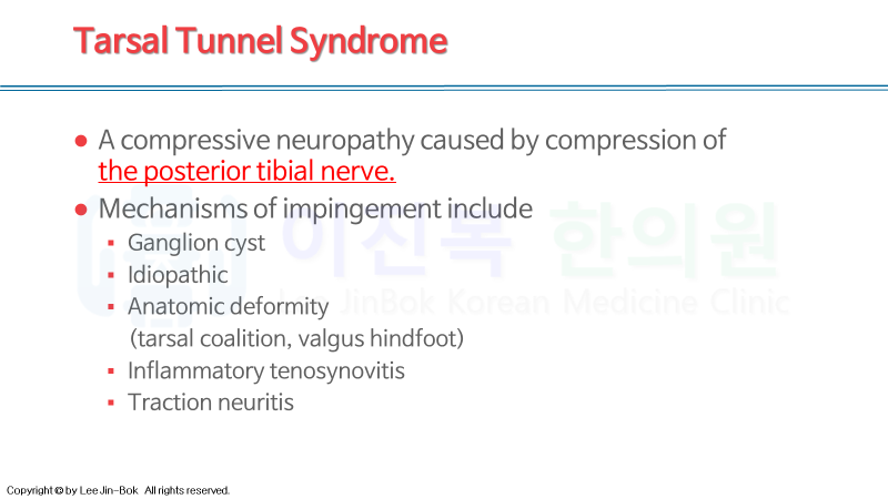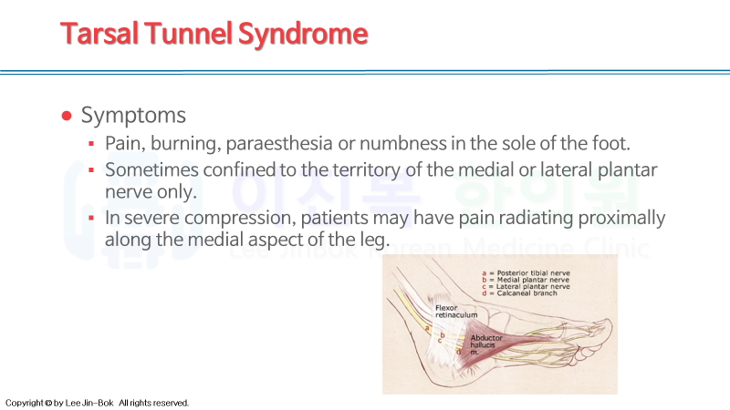 발목 터널증후군(족근관증후군)에 대해 알아보겠습니다.