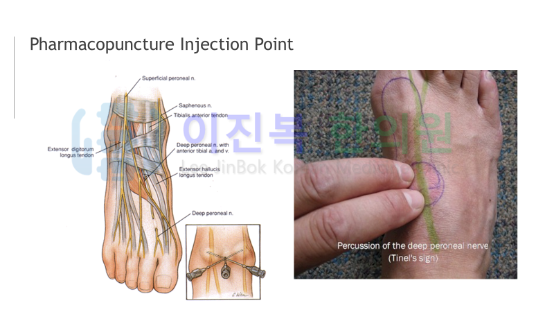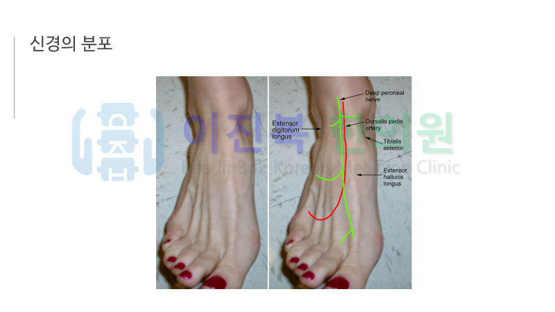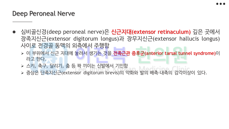 심비골 신경의 포착 부위에 전침 및 약침 치료가 아주 효과적입니다.