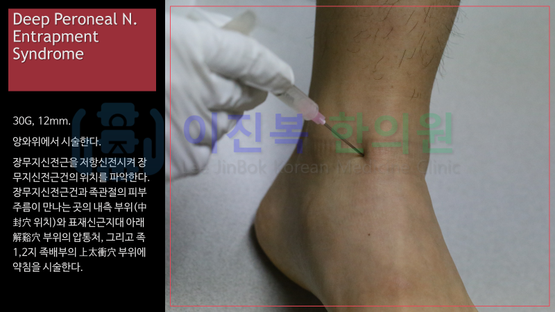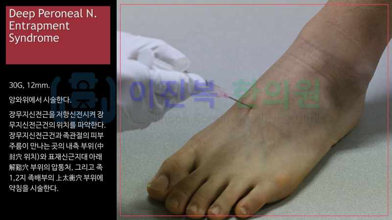 심비골 신경의 포착 부위에 전침 및 약침 치료가 아주 효과적입니다.