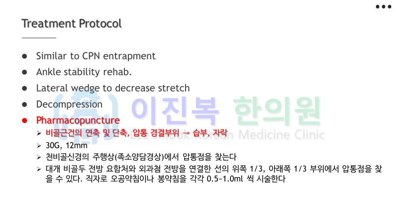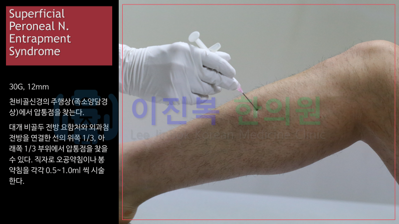 이미 올려드린 총비골신경, 심비골신경과 감별 진단하여 치료하게 됩니다.