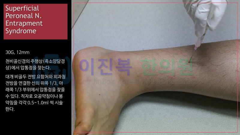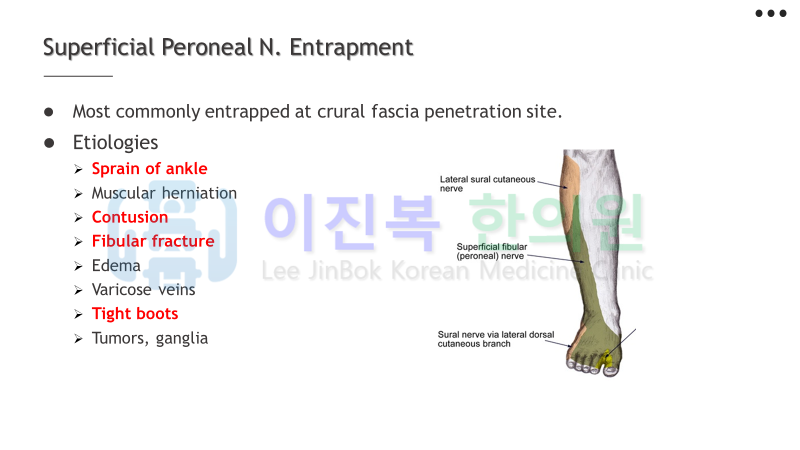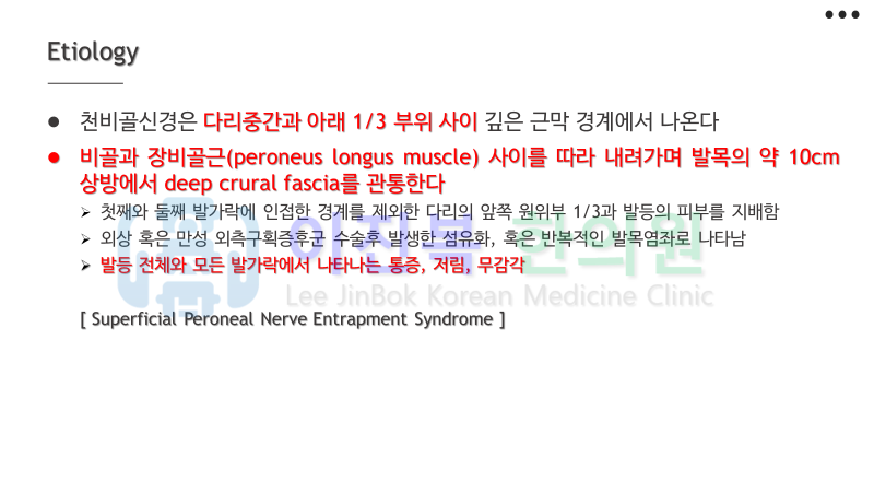 이미 올려드린 총비골신경, 심비골신경과 감별 진단하여 치료하게 됩니다.