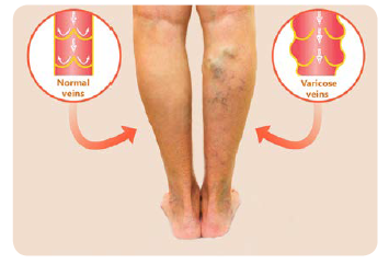 ● 유발 요인으로는 가족력, 오래 서 있거나 운동 부족으로 인한 정맥판막 기능 저하, 노화로 인한 종아리 근육 위축