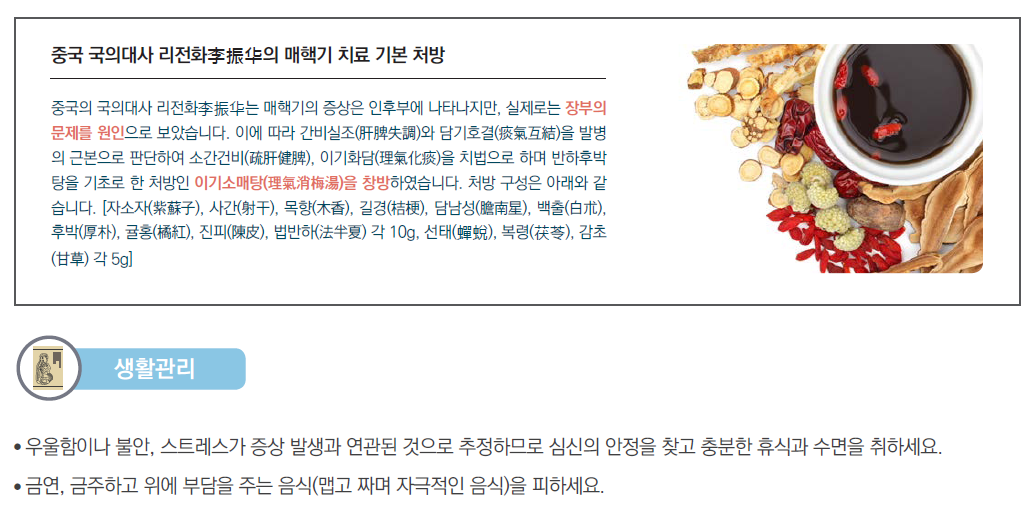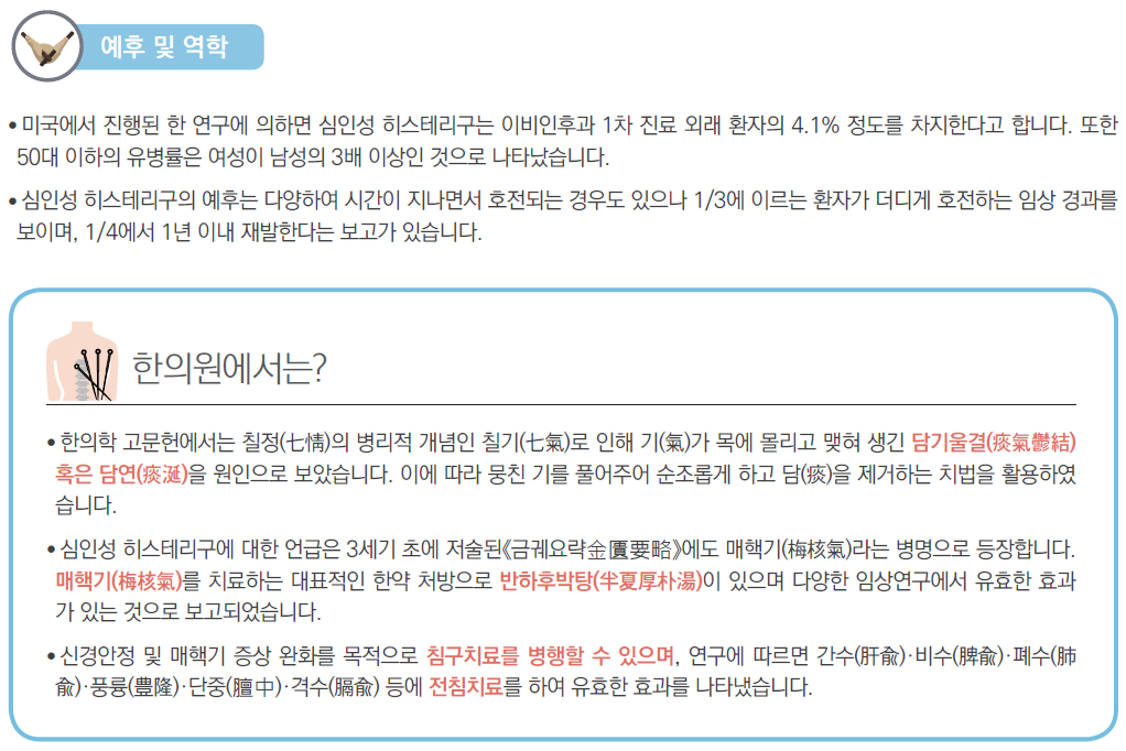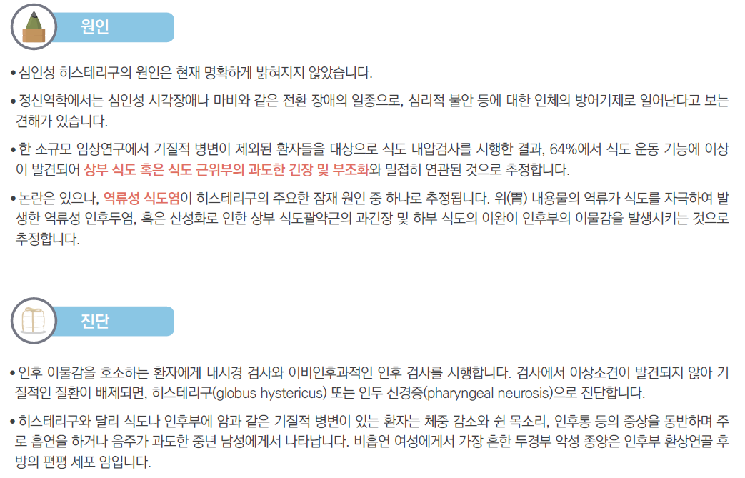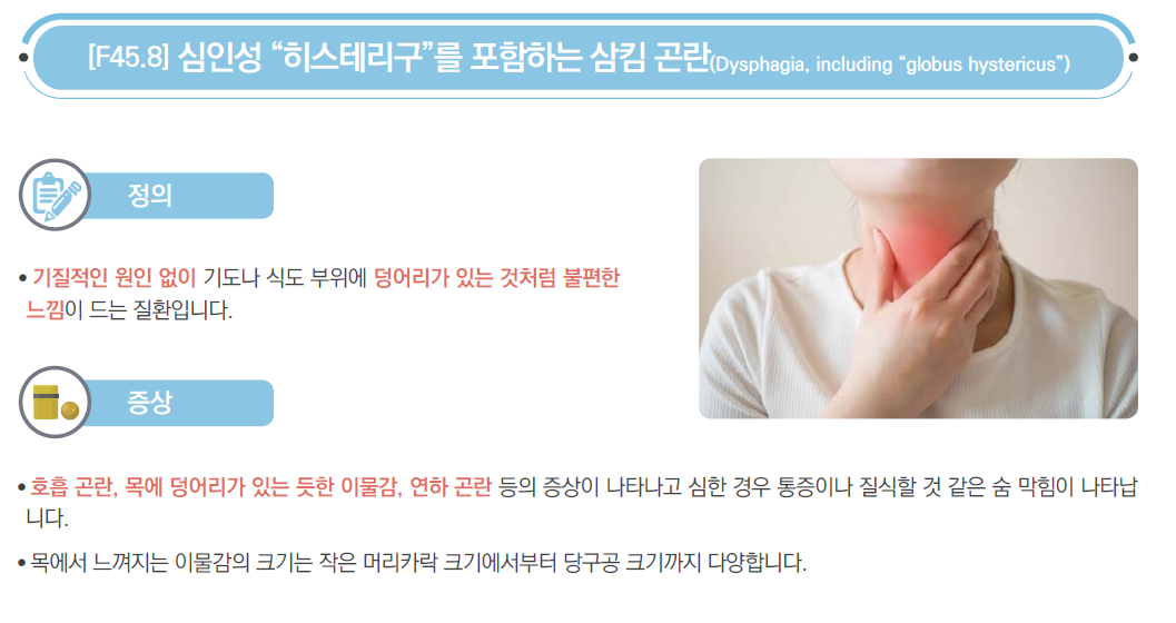 오늘은 기질적 원인 없이 기도나 식도 부위에 덩어리가 있는 것처럼 불편함을 호소하는,