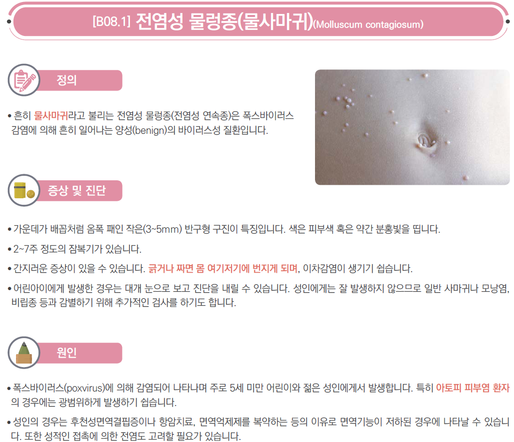 오늘은 물사마귀에 대해 알아보겠습니다.