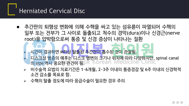 오늘은 경추 디스크로 불리는 경추 추간판 탈출증에 대해 알아보겠습니다.