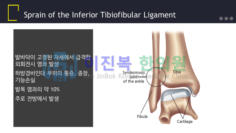 오늘은 발목 염좌 중 전하경비인대 손상에 대해 알아보겠습니다.