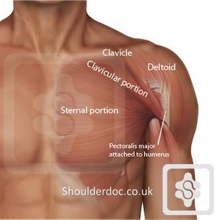 근육이 수축되면서 겨드랑이 방향으로 덩어리 모양으로 튀어나와 보입니다.