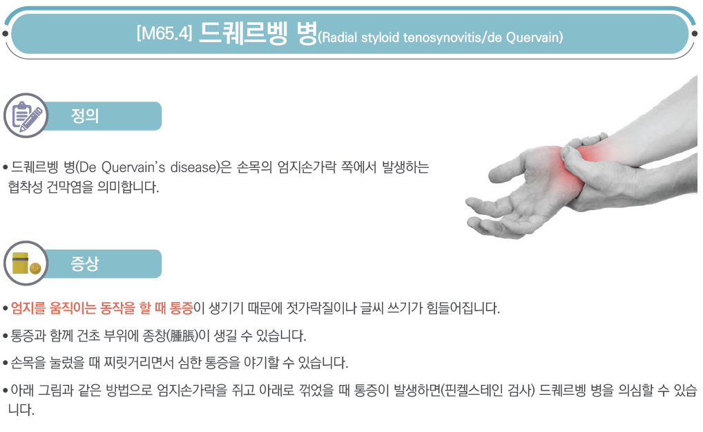 오늘을 손목의 협착성 건초염인 드퀘르벵 병에 대해 알아보겠습니다.