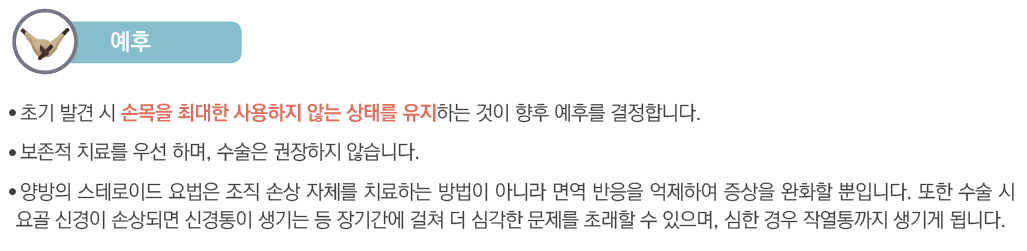 협착 및 건 비대로 인한 건증 소견이 보인다면 침도 요법이 더 효과적입니다.