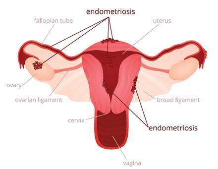 ● 일부 여성은 광범위한 자궁내막증이 있음에도 무증상일 수 있고, 일부에서는 병변이 아주 작아도 심한 통증을 호소할 수 있습니다.