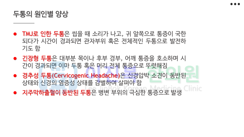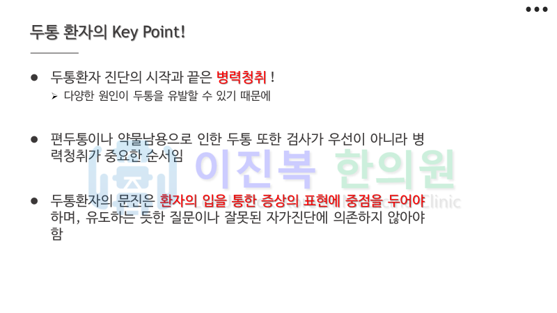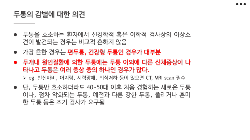 두통 및 현훈은 감별 진단이 제일 중요합니다.
