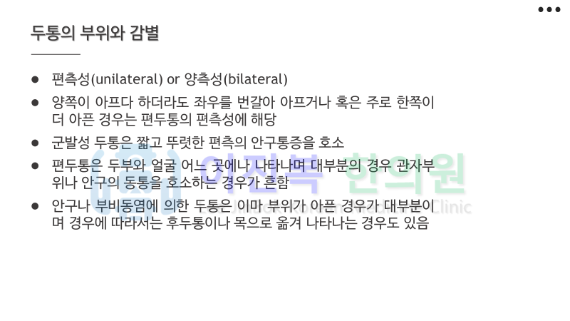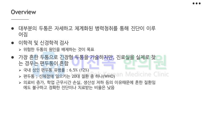 오늘은 두통 및 현훈에 대해 개괄적인 내용을 살펴 보겠습니다.