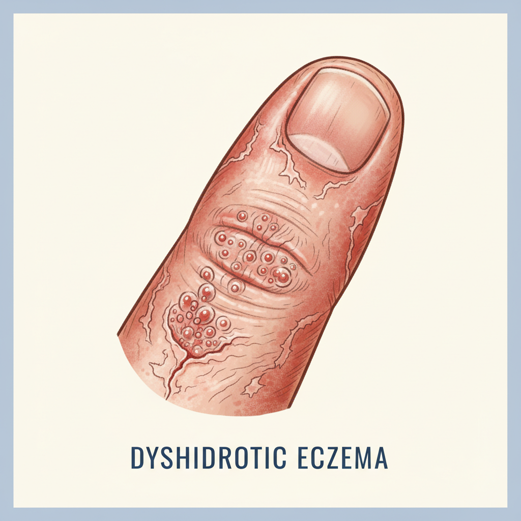 - 뚜렷한 원인 없이 손바닥, 발바닥, 손가락, 발가락 등에 작은 물집(수포)이 생기는 재발성 습진성 피부 질환입니다.