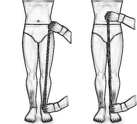 □ 임상적 측정 방법은 앙와위에서 줄자 등으로 배꼽부터 경골의 내과(Medial Malleolus)까지 측정하는 겉보기 다리 길이(apparent leg length)와 전상장골극에서 하내과까지 측정하는 실제 다리 길이(actual leg length)가 있습니다.