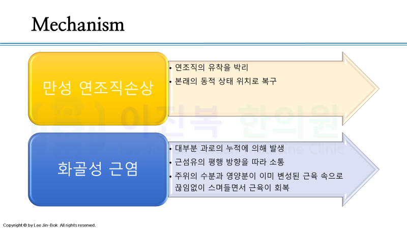 조직의 유착이 심하거나 구축된 경우에 주로 적용하고 있습니다. 염증성, 마찰 질환의 경우 우선적으로는 침도를 사용하지 않습니다.