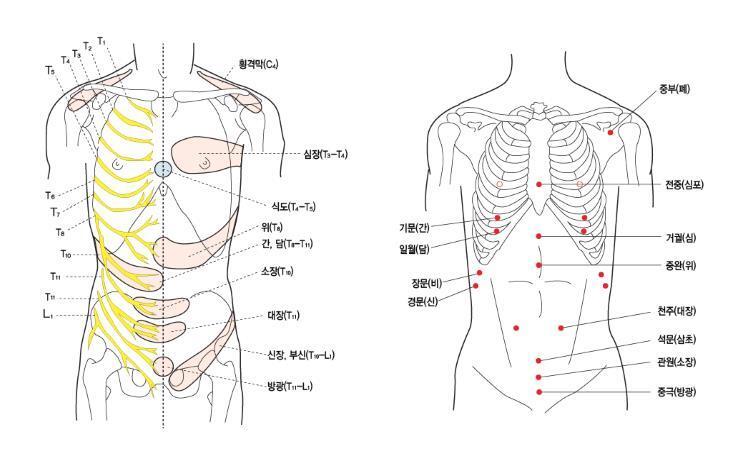 2) 복모혈(腹募穴)과 배수혈(背兪穴)