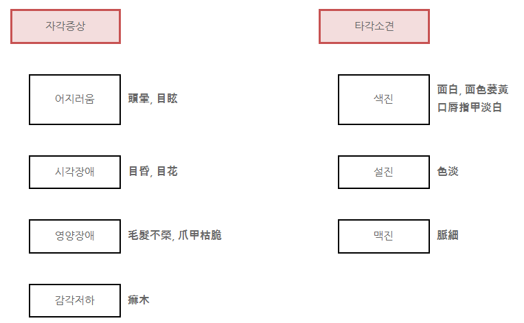 □ 혈(血)의 양이 부족하거나 허(虛)하여 생긴 병증을 말합니다.