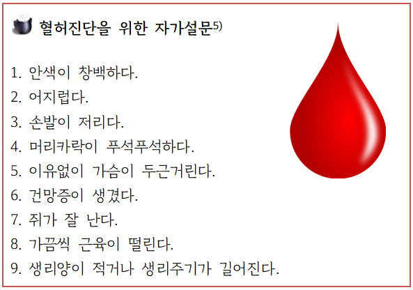 □ 혈허증 측정 설문을 참고하여 해당하는 증상이 있을 시 가까운 한의원에 찾아가 미리 상담을 받으십시오.
