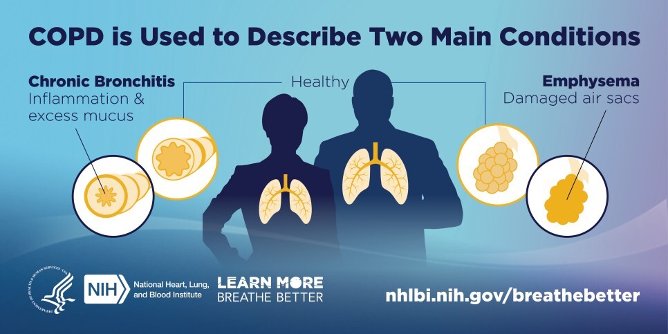 □ 만성폐쇄성폐질환(COPD) : 대표적인 증상은 호흡곤란과 기침, 가래입니다. 가슴이나 목에서 숨을 쉴 때 쌕쌕거리는 소리가 나거나, 가슴이 답답한 느낌이 들기도 합니다. COPD가 점차 진행되면 이런 증상은 더 심해지고, 쉽게 피곤해지거나 체중이 줄어들며 폐의 기능이 떨어지면서 심장에도 무리를 주는 폐성심(폐심장증)이 나타날 수 있다.