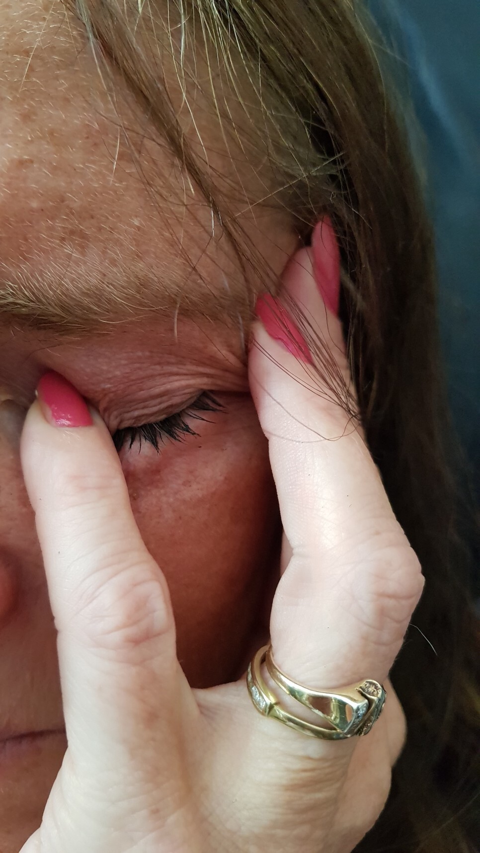 1. 결막 충혈 또는 눈물흘림(流淚) (또는 모두)