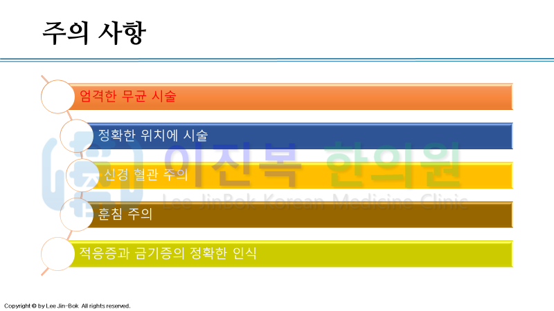 그리고 위험하기에 전문적으로 시술을 많이 해 본 경험이 많은 한의사에게 받는 것이 좋습니다.