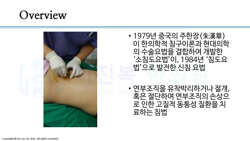오늘은 침도 요법에 대해 설명드리겠습니다.