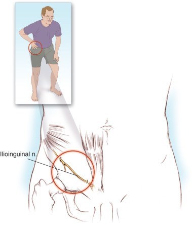 장골서혜부신경의 포착으로 인한 사타구니 통증은 신경 유주상에서 다양하게 발생가능하다. 물리적으로는 서혜부탈장복원술, 골반수술시 견인이나 직접적인 둔상, 손상에의해서 일어날 수 있고, 수술 후 유착에 의해서도 발생가능 하다.