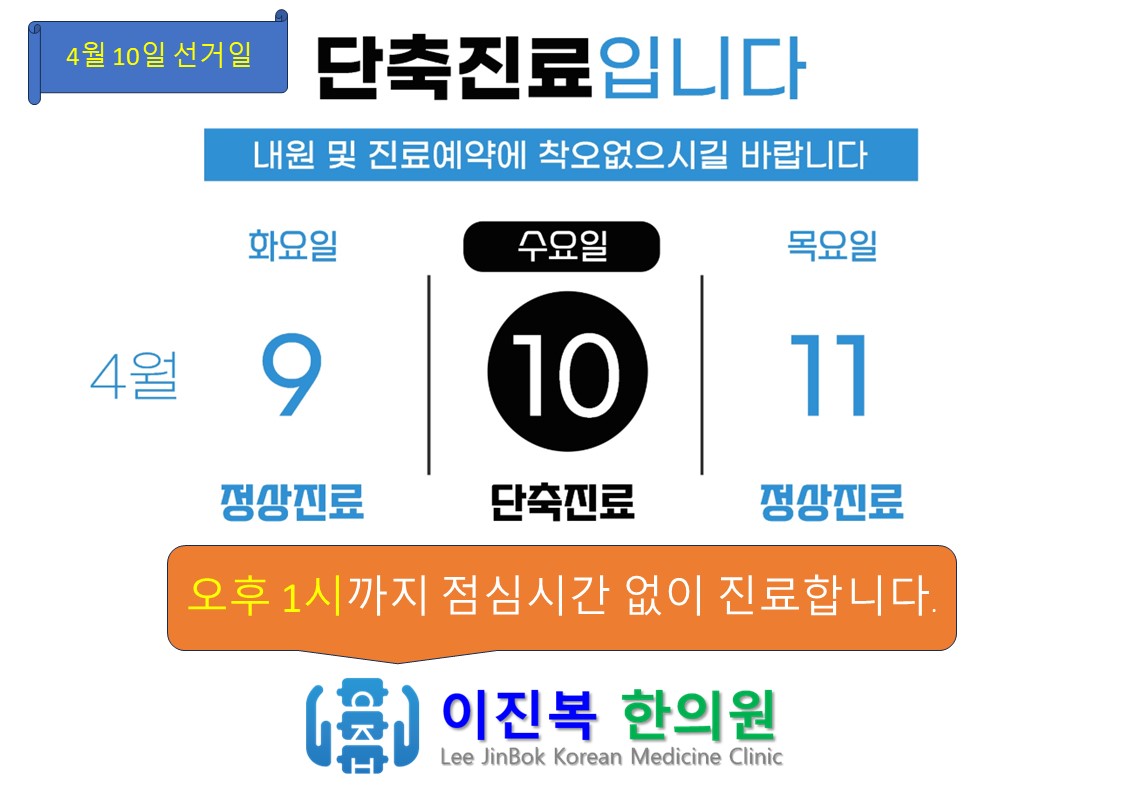 | 전주 이진복한의원 5월 진료 안내문 (0) | 2024.04.30 |