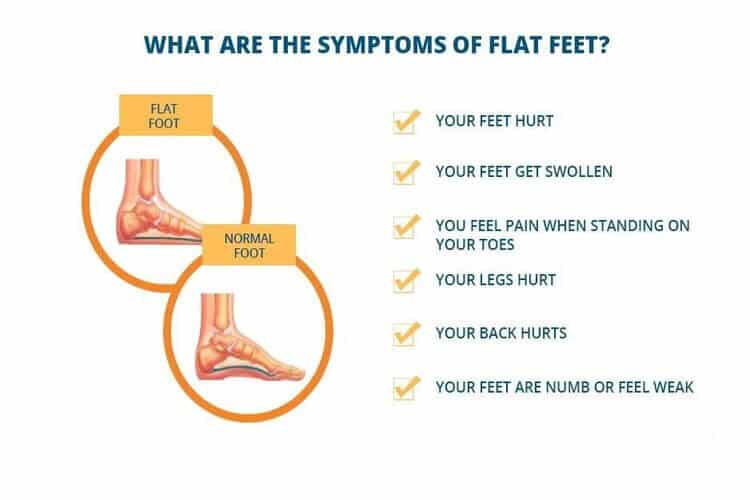 그 외에도 평발로 인해 신발 안쪽이 먼저 닳는다거나 발뒤꿈치가 바깥쪽으로 틀어지는 모양을 갖게 된다.