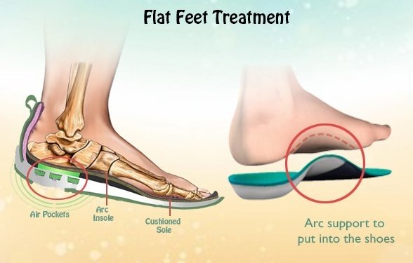 유연형이면서 무증상이면 굳이 치료할 필요가 없다. 그러나 발바닥 아치를 만들어주는 깔창 및 발바닥과 바닥의 마찰을 줄여주는 신발을 신는 다면 훨씬 더 발의 피로감을 해소할 수 있다.