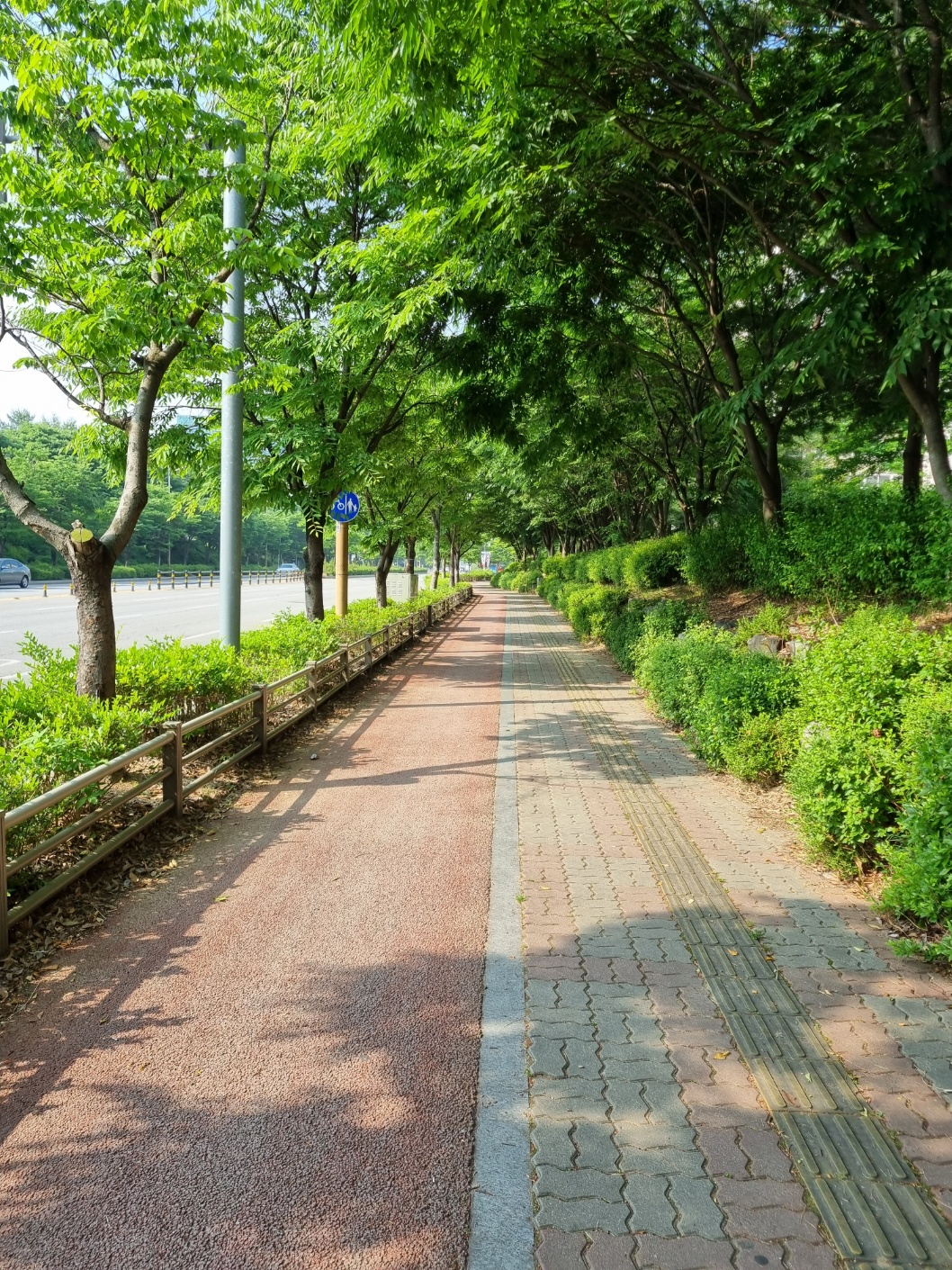 아침에 이 길을 걸으면 나무가 우거져 걸을 때 시원합니다.