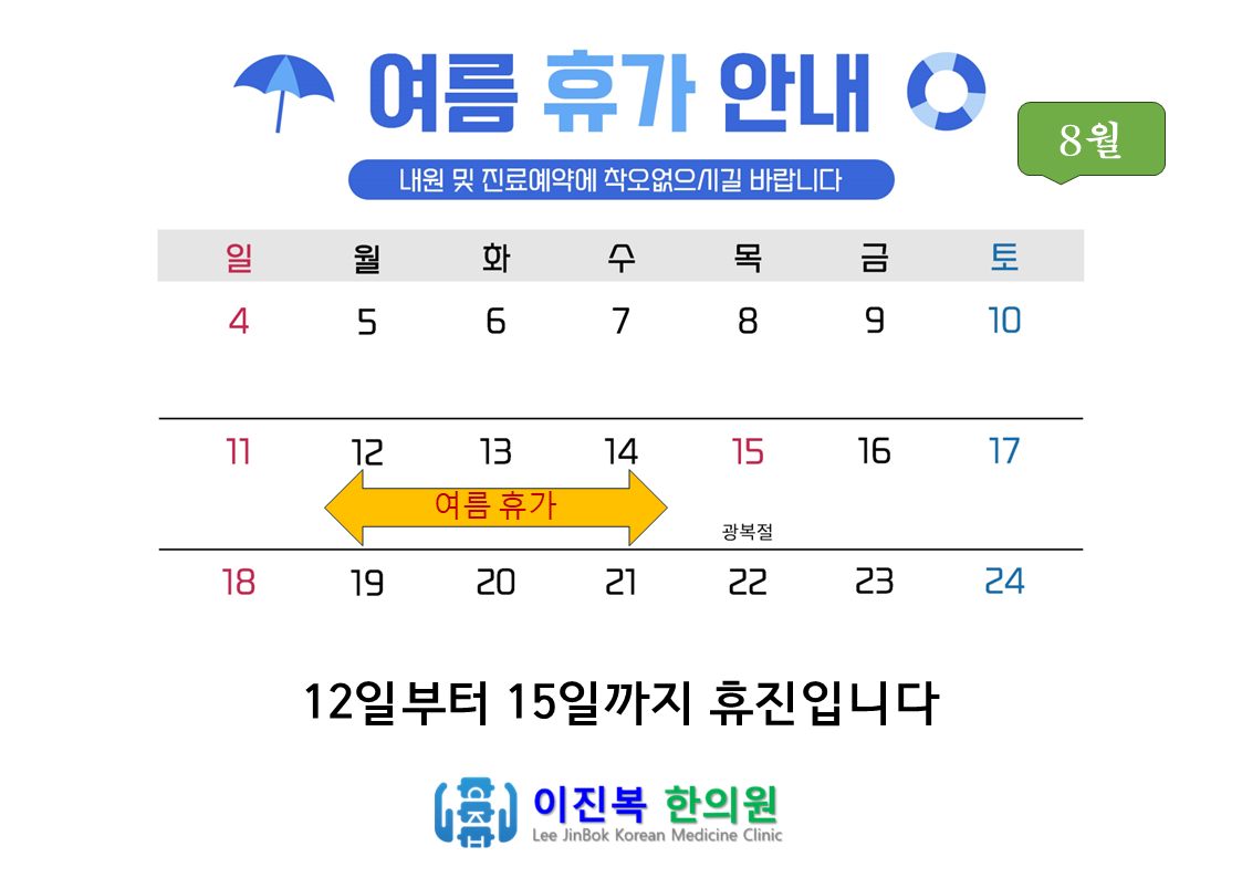 한의원 휴가일정 안내드립니다.