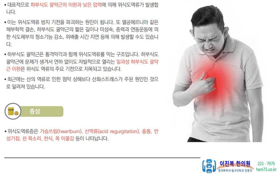 오늘은 현대인들에게 많이 발생하고 있는 위식도 역류질환에 대해 알아보겠습니다.