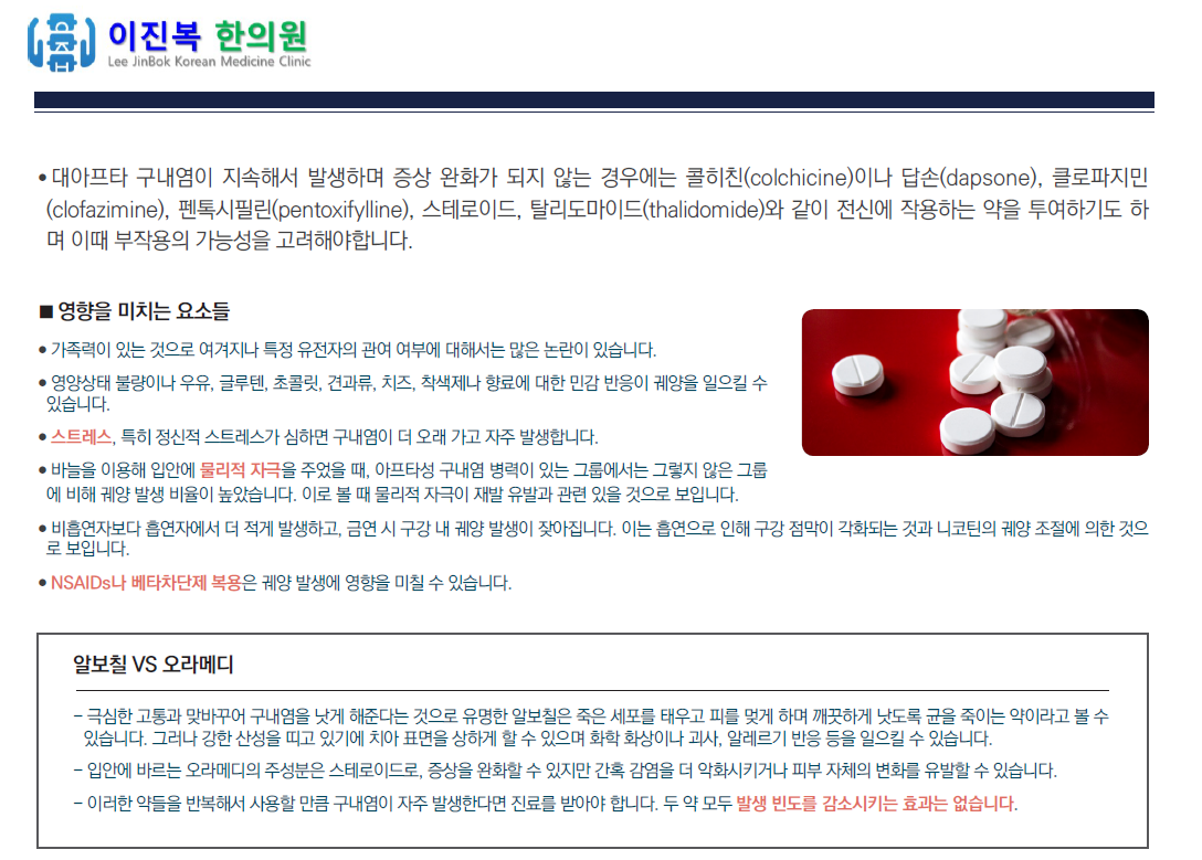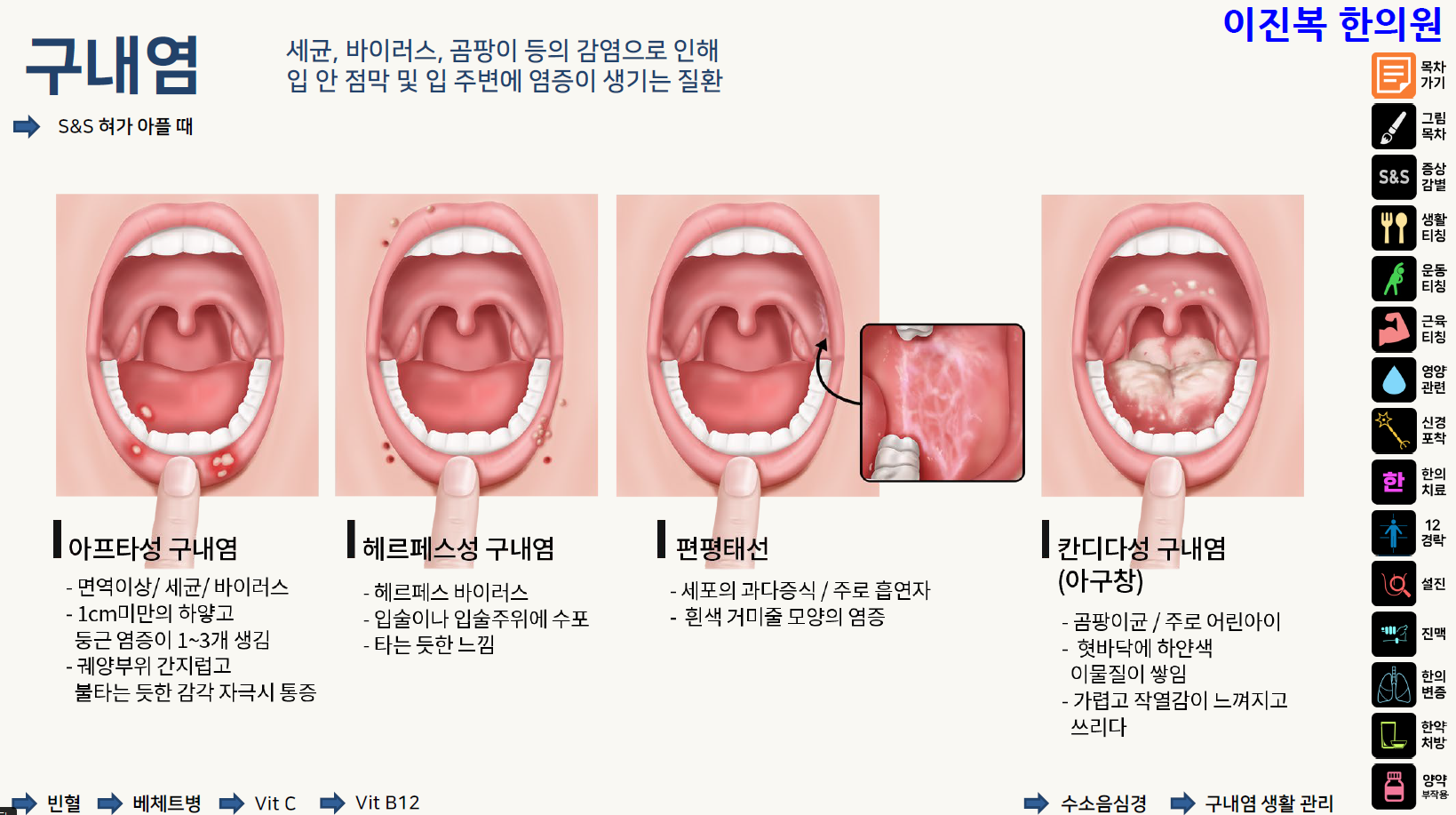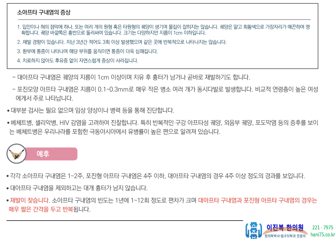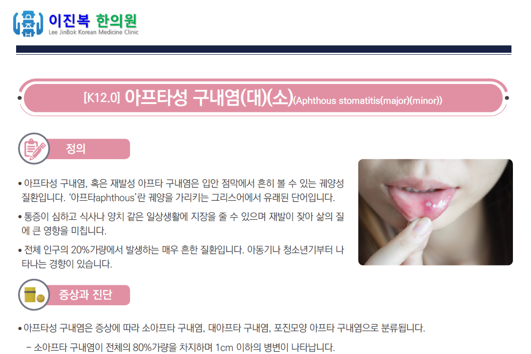 오늘은 자주 재발하는 아프타성 구내염에 대해 알아보겠습니다.