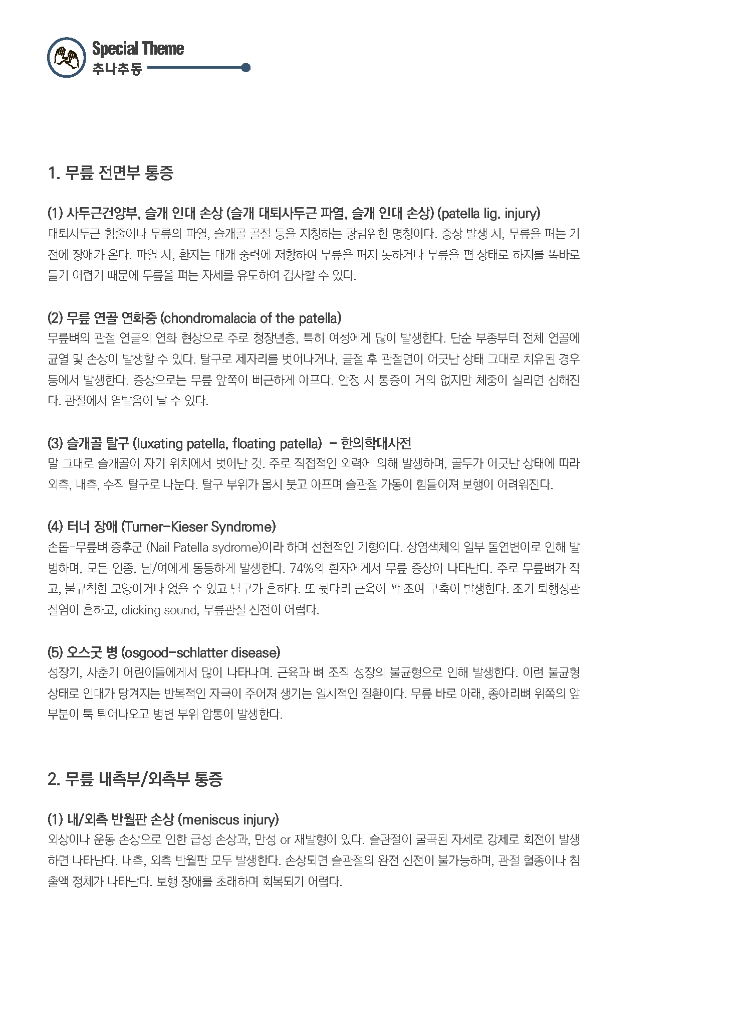 오늘은 무릎 통증에 대해 아주 잘 설명 된 자료가 있어 소개드립니다.