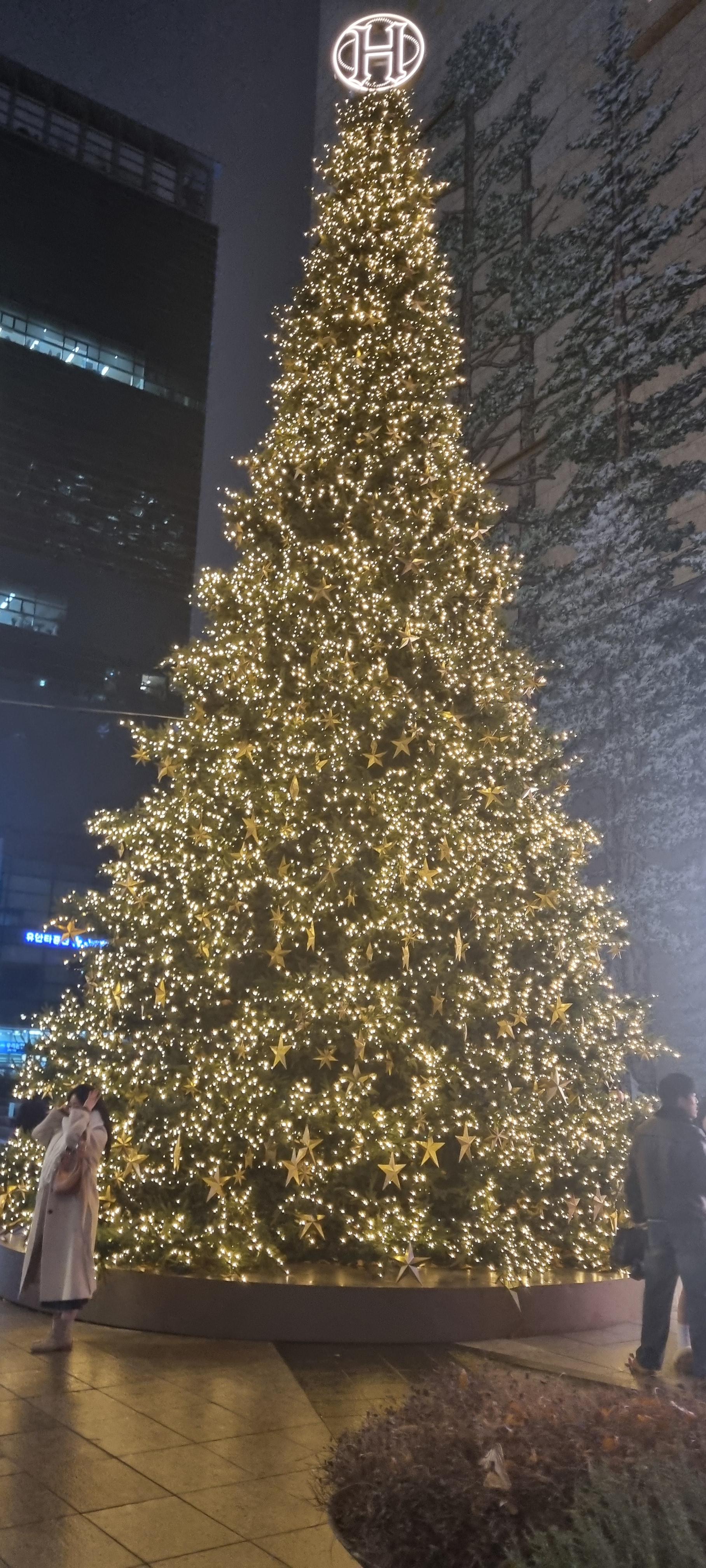 모이는 장소가 강남이다 보니, 예약한 호텔을 가다가 현대 백화점 트리~~ 기념으로 사진 찍어봤네요.
