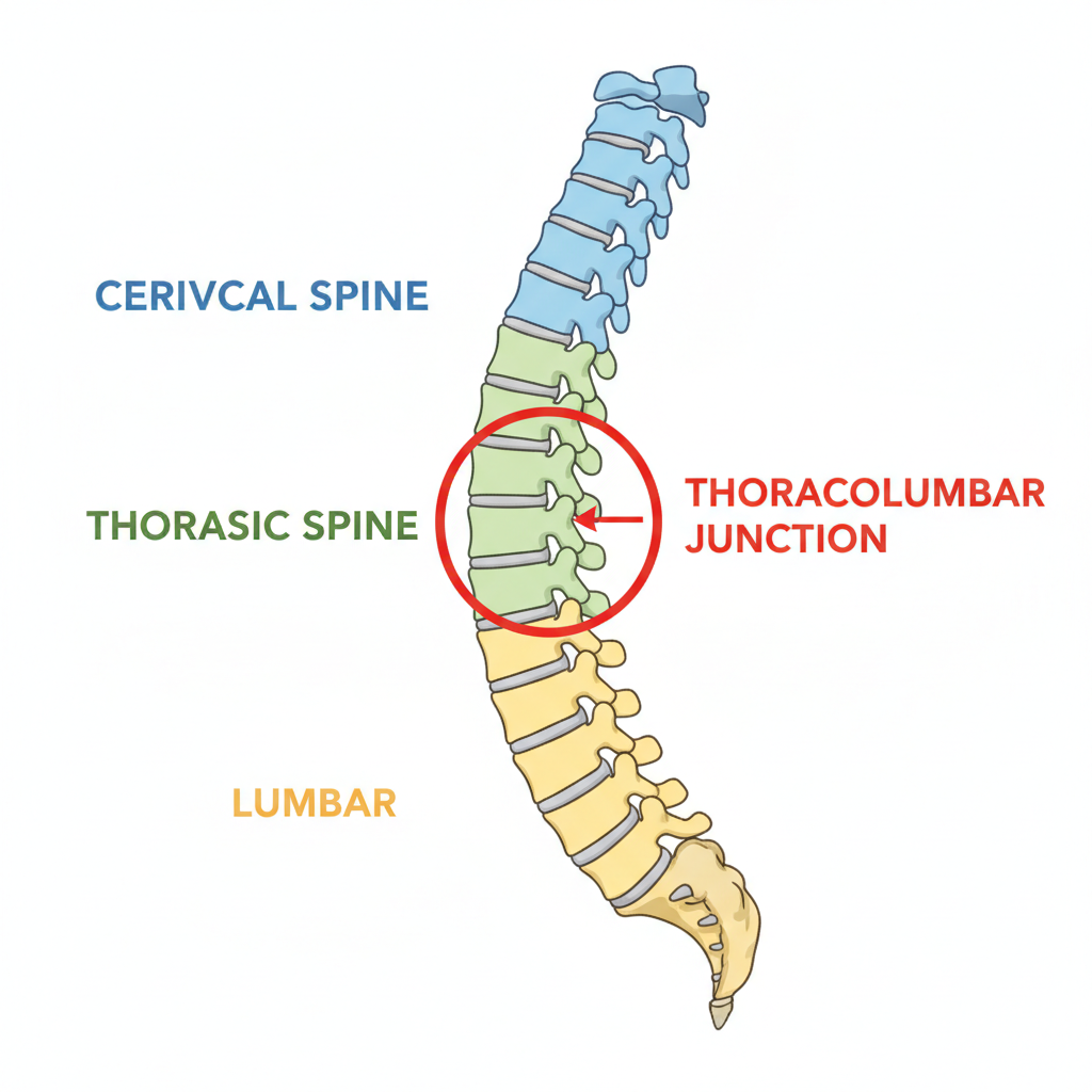 우리가 보통 '등'이라고 부르는 흉추랑 '허리'라고 부르는 요추가 만나는 지점, 딱 흉추 12번이랑 요추 1번이 만나는 곳을 "흉요추연접부(T-L junction)"라고 하거든요.