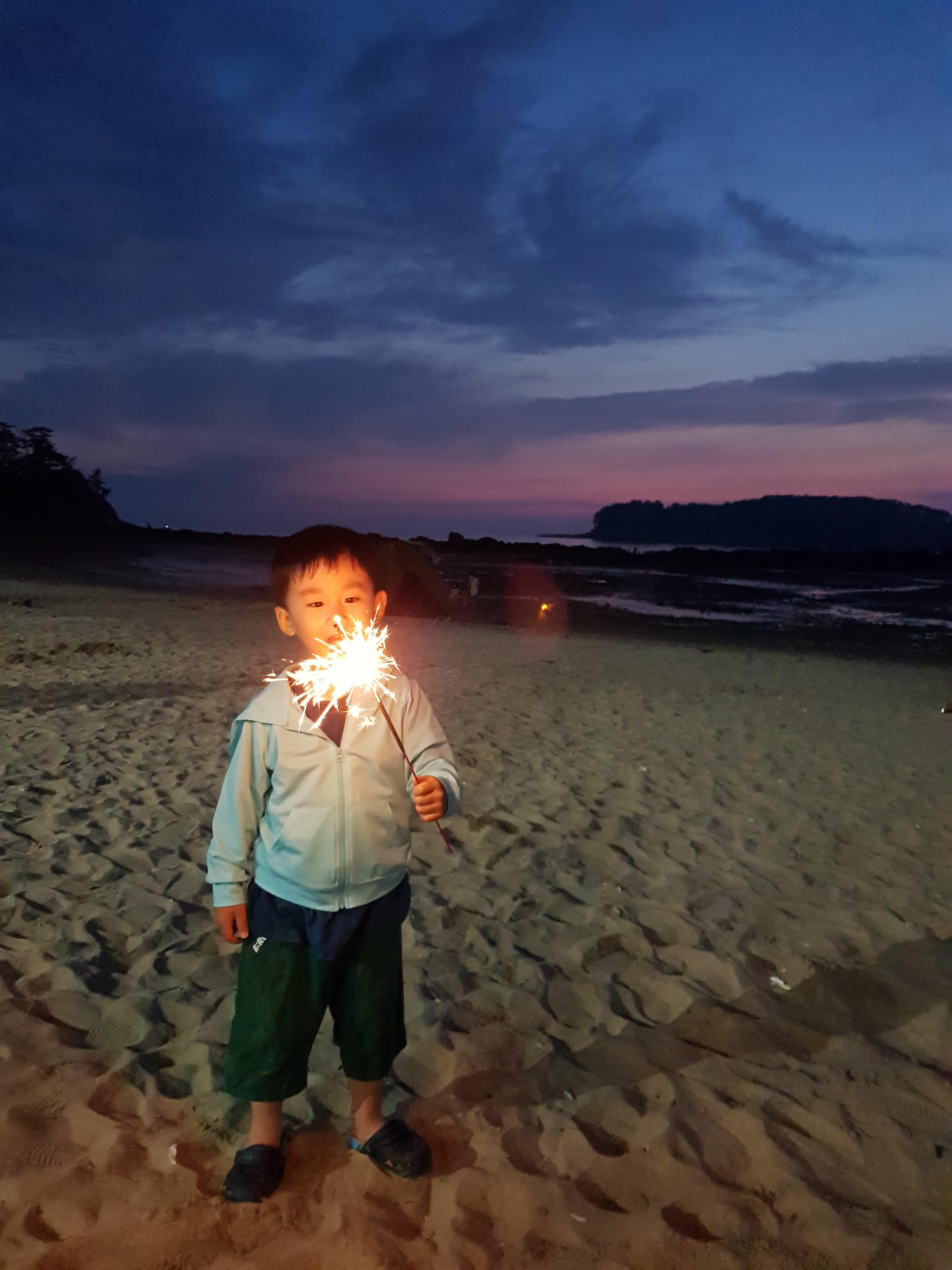 낮에는 바다 앞에 가서 조개 캐고 깡통 열차 타고, 밤에는 불꽃놀이하는~~!!
