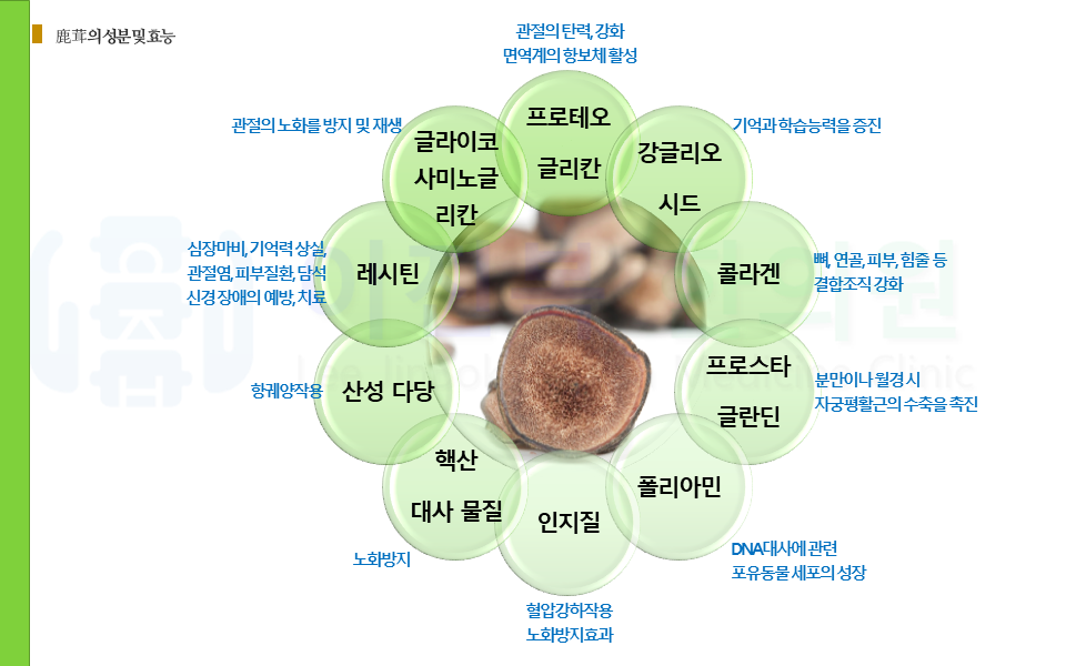 녹용 안의 다양한 성분들이 여러 효능을 내고 있습니다.
