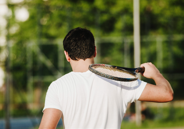 □ 편측운동인 테니스, 배드민턴, 야구 등의 라켓 운동에서 발생하기 쉬우므로 운동을 시작하기 전 충분한 준비운동으로 몸을 풀어 줍니다.