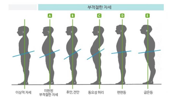 일자목, 골반의 틀어짐, 굽은등, 휜다리, 측만증 등 자세의