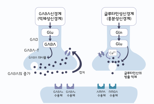 ▲ 그림 5. 중추신경계의 GABA 수용체와 글루타민 산 수용체