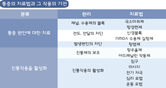 ▲ 표 1. 통증의 치료법과 그 작용기전.