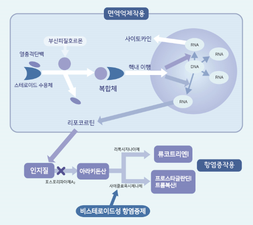 ▲ 그림 2. 스테로이드와 NSAIDs의 진통 기전.